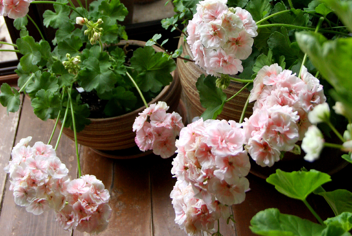 Лето прошло, и белым пеларгониям вновь не уделили должного внимания. Розовые сорта, расцветающие на веранде, как всегда, радовали глаз, а красные пеларгонии обласканы вниманием и тоже не оставили равнодушными.