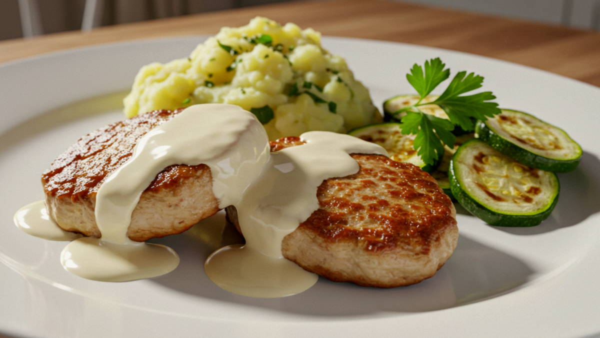 Теперь важный момент: котлеты заливаются сметаной или сливками, накрываются крышкой и томятся на слабом огне в течение 15 минут. В результате получаются мультяшно нежные, сливочные котлеты, которые будут настоящим лакомством!