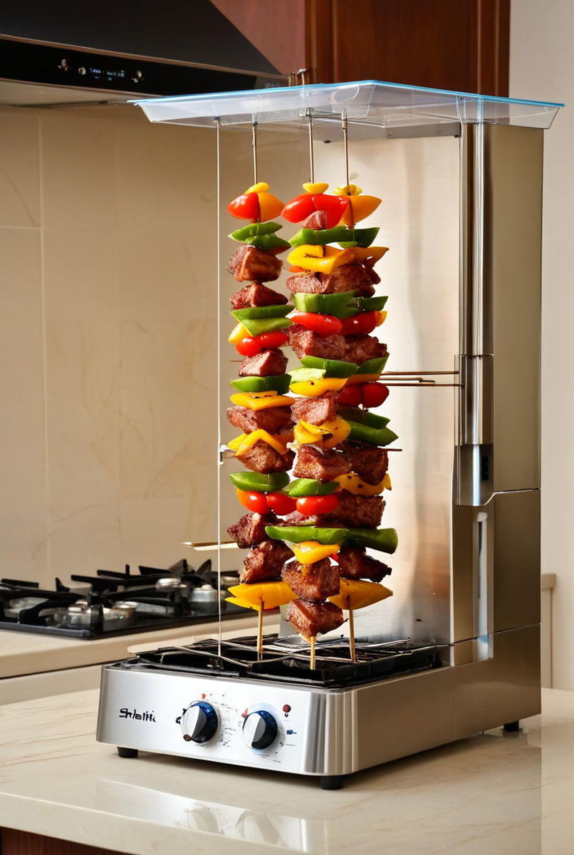 Вертикальная электрошашлычница компактнее и занимает меньше места на столе; жир стекает в поддон, а не в духовку.
