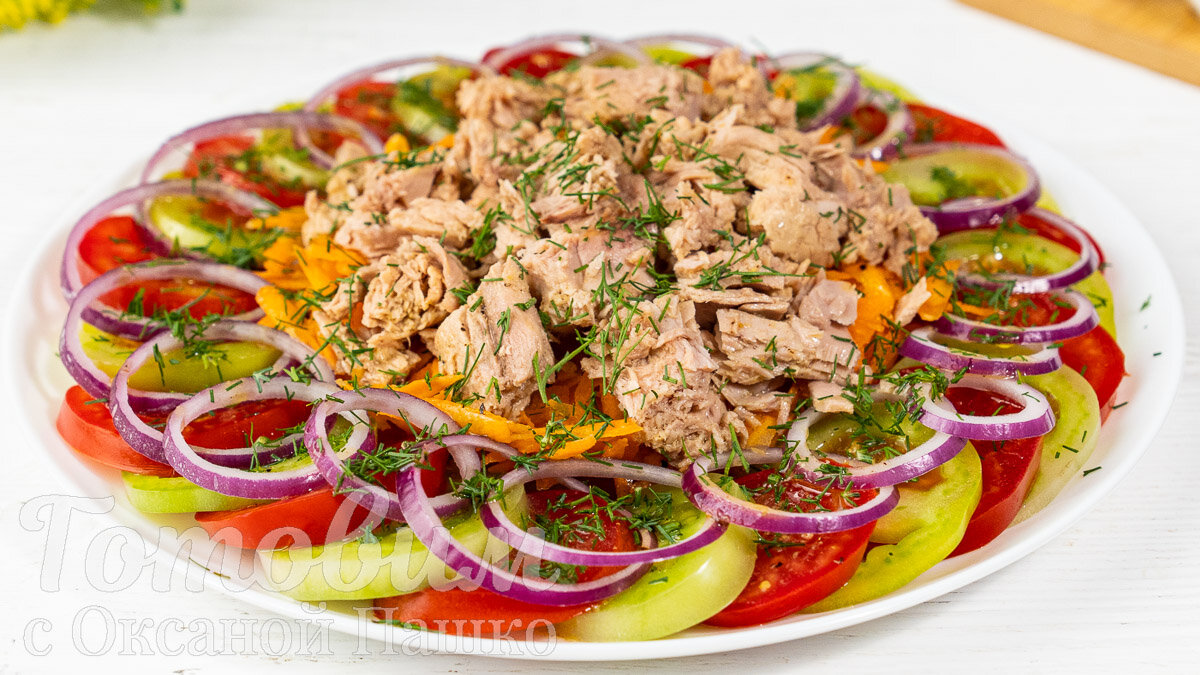 Новый осенний салат с тунцом и помидорами — это отличное решение для тех, кто хочет разнообразить свое меню! В этом блюде гармонично сочетаются сочные красные и зеленые томаты, острый красный лук, свежая морковь и пикантный тунец. Легкая заправка из оливкового масла и горчицы придает салату особое очарование. Такой яркий и насыщенный салат будет прекрасно смотреться как на ежедневном столе, так и на праздничном банкетном столе.