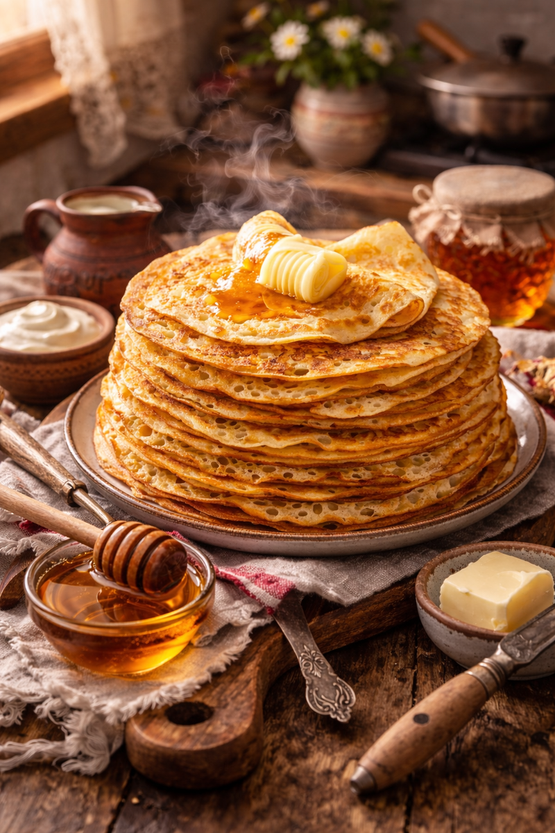 Тем, кто успел попробовать настоящие дрожжевые блины, известно, что это настоящая гастрономическая находка. В отличие от тонких блинчиков, их текстура намного более нежная и упругая, с характерными пузырьками и лёгким ароматом хлеба. Как правило, такие блины идеально дополняются мёдом, сметаной или кусочками красной рыбы. Их можно наслаждаться и с простым сливочным маслом!