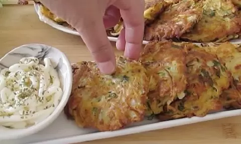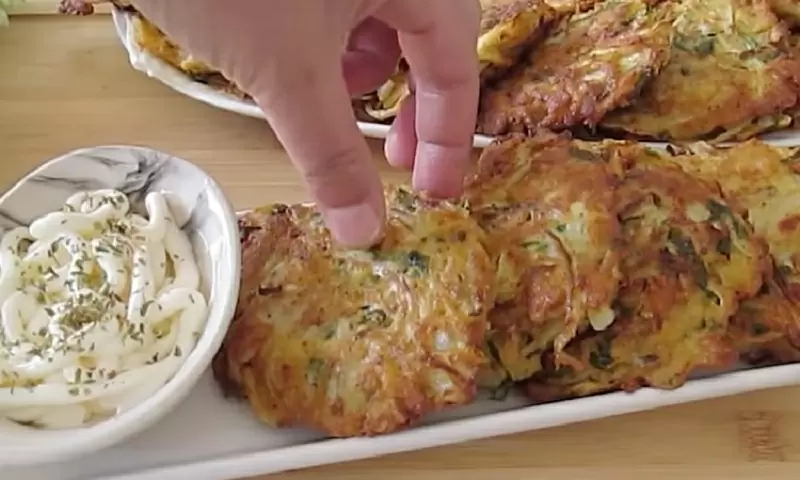 После приготовления рекомендуется выложить оладьи на бумажное полотенце, чтобы удалить лишний жир. Подавайте горячими, украсив свежей петрушкой и подавая со сметаной или йогуртом.