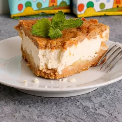 Теперь займемся творожным слоем. В глубокой миске смешайте творог с яйцом, медом и добавьте немного ванили для аромата. Яблоки очистите от кожицы и нарежьте дольками. Выложите дольки яблок на основу, а сверху аккуратно распределите творожную массу. Завершите, накрыв творожный слой оставшимся тестом.