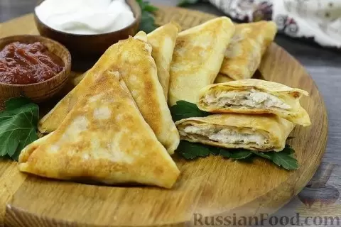 Первый в нашем списке – блинчики, наполненные сочным куриным фаршем. Эта начинка готовится с добавлением лука, пропущенного через блендер, и ледяной воды для сохранения нежности. Блинчики обжариваются до золотистой корочки, создавая идеальное сочетание текстур и вкусов, которое не оставит равнодушным никого.