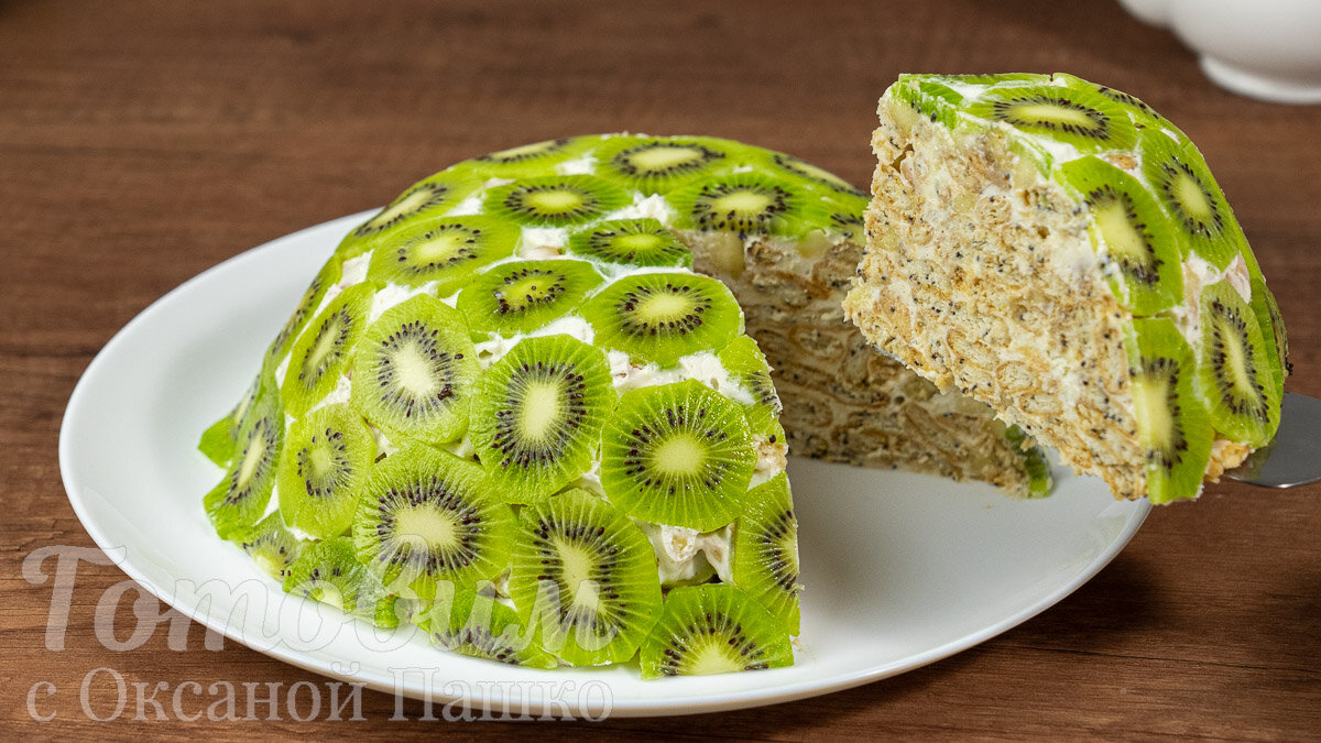 Сладкоежки, встречайте новый шедевр кулинарии — торт с киви, который готовится без выпечки! Этот десерт станет настоящим украшением любого стола, радуя глаз и желудок. Белоснежный сметанный крем прекрасно сочетается с хрустящими кусочками сладкого крекера, а добавить экспрессии помогут нарезанные бананы и полоски яркого киви. Данный рецепт подходит даже начинающим кулинарам и не требует редких ингредиентов, что делает его доступным и простым в исполнении.