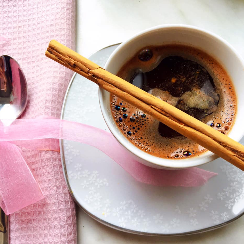 Теперь можно перейти к процессу приготовления. В первую очередь, аккуратно снимите цедру с апельсина. Затем положите в турку одну чайную ложку цедры, добавьте корицу и черный перец. Засыпьте две чайные ложки молотого кофе. Наполните турку водой (по вкусу) и поставьте её на медленный огонь.