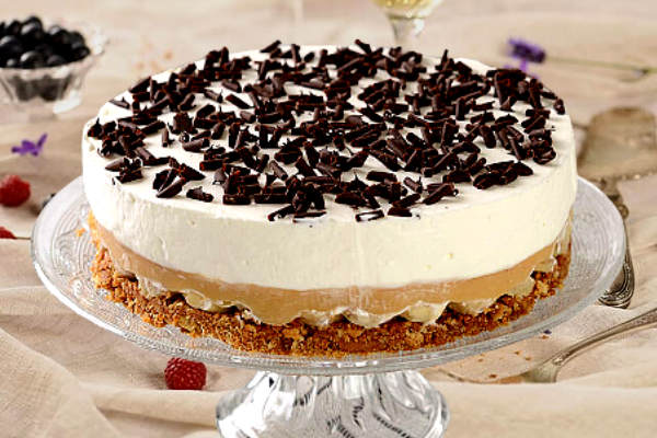 Этот вкусный десерт был изобретен в Великобритании, где классический банановый пирог превратился в баноффи благодаря добавлению сливок и молочной карамели. Основание напоминает чизкейк и готовится из раскрошенного печенья с маслом. Состав легко запомнить, а результат не перестанет радовать!