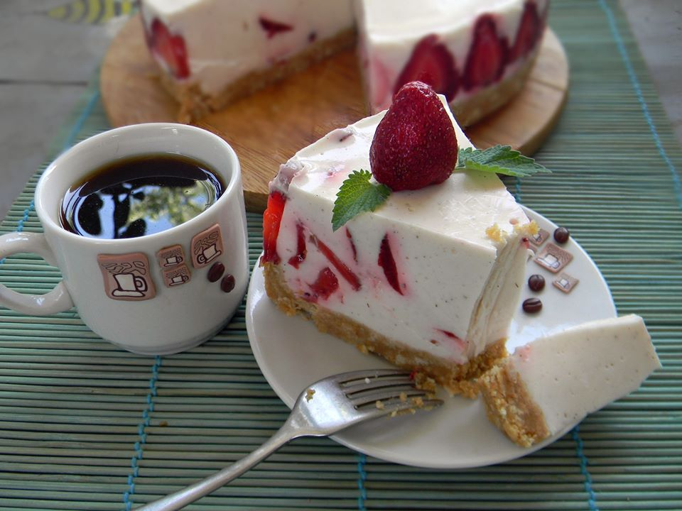 Утром десерт аккуратно освободить от бумаги, переложить на подставку и при желании украсить. Этот торт так же прекрасно будет смотреться с добавлением какао, что сделает его шоколадным и еще более аппетитным.