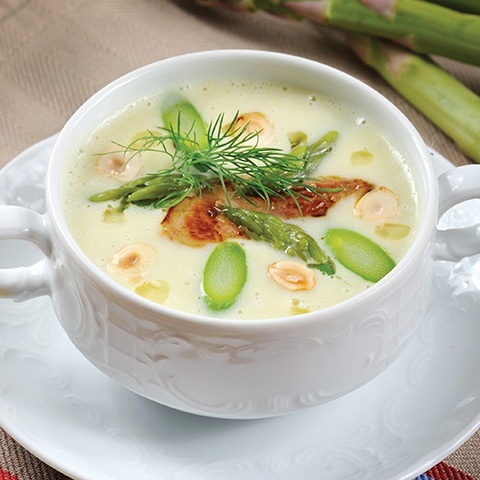 Этот изысканный крем-суп из спаржи — настоящая находка для тех, кто хочет удивить гостей оригинальным вкусом. С добавлением фуа-гра и хрустящих орехов, он станет настоящим кулинарным шедевром.
