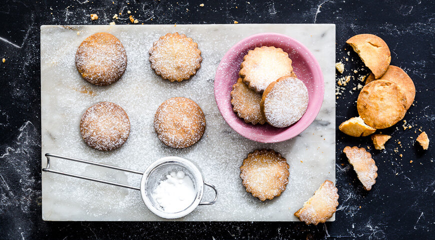 Шаг 6: Разогрейте духовку до 180°C и выпекайте печенье 15–20 минут до золотистой корочки. После выпекания дайте печенью остыть, а перед подачей посыпьте сахарной пудрой.