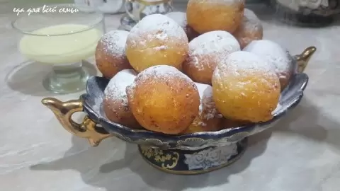 Разогрейте растительное масло в глубокой сковороде. Опускайте пончики в кипящее масло, регулярно перемешивая, чтобы они равномерно подрумянились. Как только они станут золотистыми, выкладывайте их на бумажное полотенце, чтобы впитать излишки масла. Не забудьте посыпать сахарной пудрой и подать с сгущенным молоком — вот тогда уж точно можно сказать, что ваш десерт великолепен!