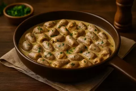 Готовые сердечки подавайте горячими. Прекрасно сочетаются с картофельным пюре, гречкой, макаронами или просто с мягким хлебом. Для освежающего контраста можно добавить легкий овощной салат. Такой ужин станет настоящим украшением вашего стола!