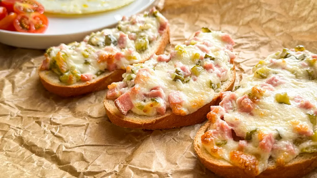 - Багет с сыром и колбасой: В качестве основы идеально подойдет багет, на который намазывают смесь из тертого сыра, нарезанной колбасы или ветчины, и добавляют ломтики соленого огурца. Сочетание таких ингредиентов с маленькой ложкой майонеза добавит необходимого вкуса.