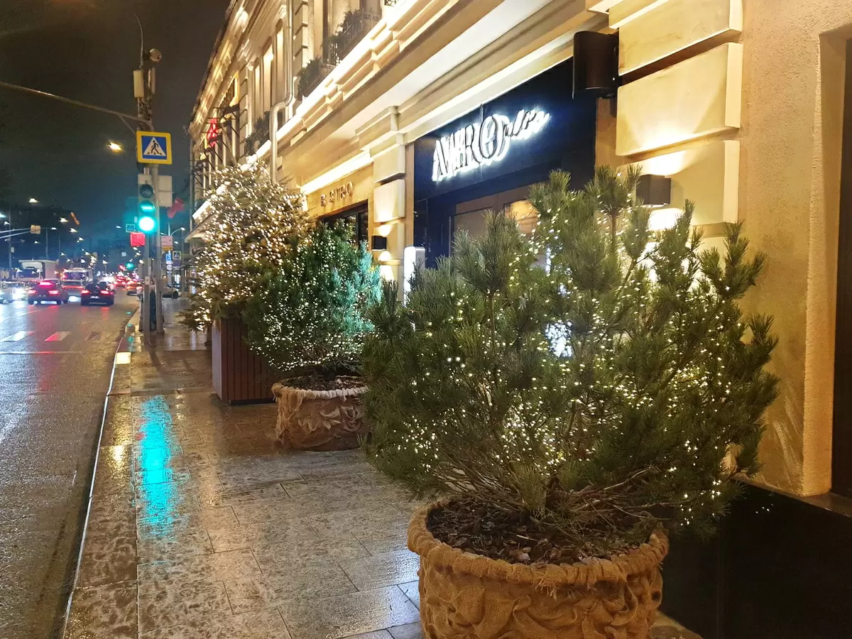 Уже при входе гостей встречают две ёлки, создавая атмосферу праздника и тепла.