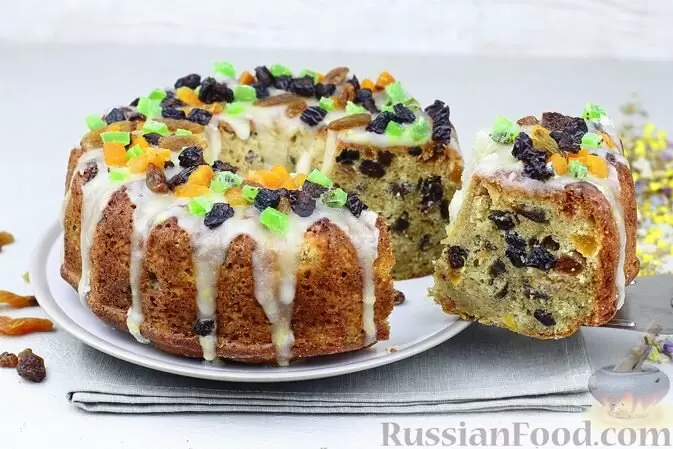 Не забудьте про кекс "Весенний" с сухофруктами на десерт! Сочетание ароматных сухофруктов в тесте без дрожжей и лимонной глазурью станет настоящим хитом вашего стола.