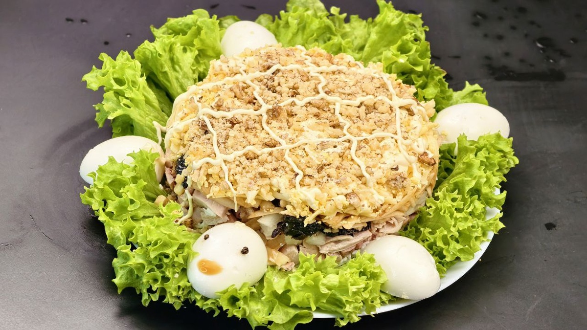 Вспоминается советская эпоха, когда этот уникальный салат был обязательным атрибутом праздничного стола. Его форма, напоминающая черепаху, поднимает настроение и создает атмосферу праздника. Расширить вкусовую палитру можно с помощью соуса унаги — он придаст блюду непередаваемую нотку востока. Плюсы этого салата очевидны: его легко приготовить, доступные ингредиенты, а также низкая калорийность, если не злоупотреблять майонезом. Кроме того, зрелищный вид заставляет угощение заиграть на фотографиях для социальных сетей.