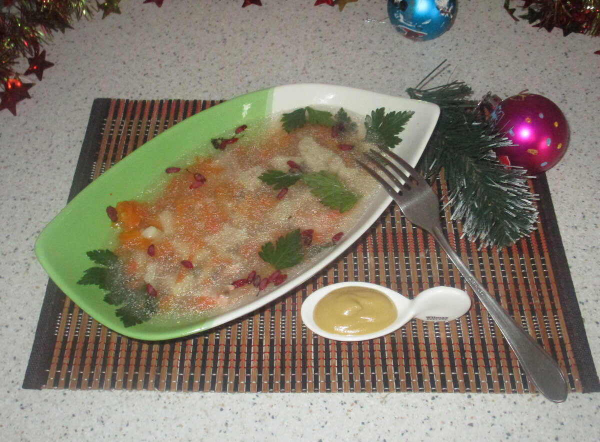 Готовое заливное можно подавать как в формах, так и в глубокой тарелке, где все ингредиенты выкладываются вместе. Это яркое и вкусное блюдо будет отлично сочетаться с горчицей, которая придаст ему пикантность. Заливное из двух видов рыбы станет настоящим украшением любого стола и порадует всех гостей!