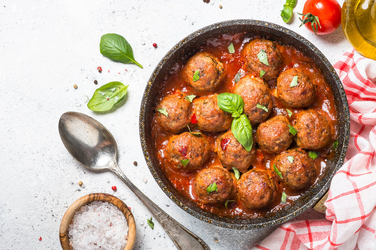 Ароматные тефтели, приготовленные на основе натуральных помидоров и свежего базилика, способны заставить вас потерять терпение в ожидании! Их изысканный вкус станет настоящим кулинарным праздник. Комбинация говядины и свинины в сочетании с томатно-базиликовым соусом делает это блюдо звездой любого стола.